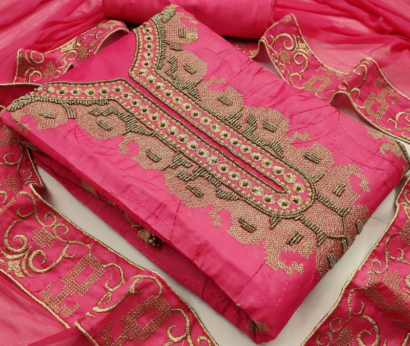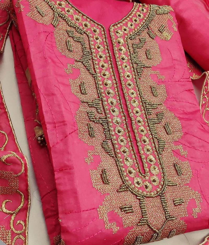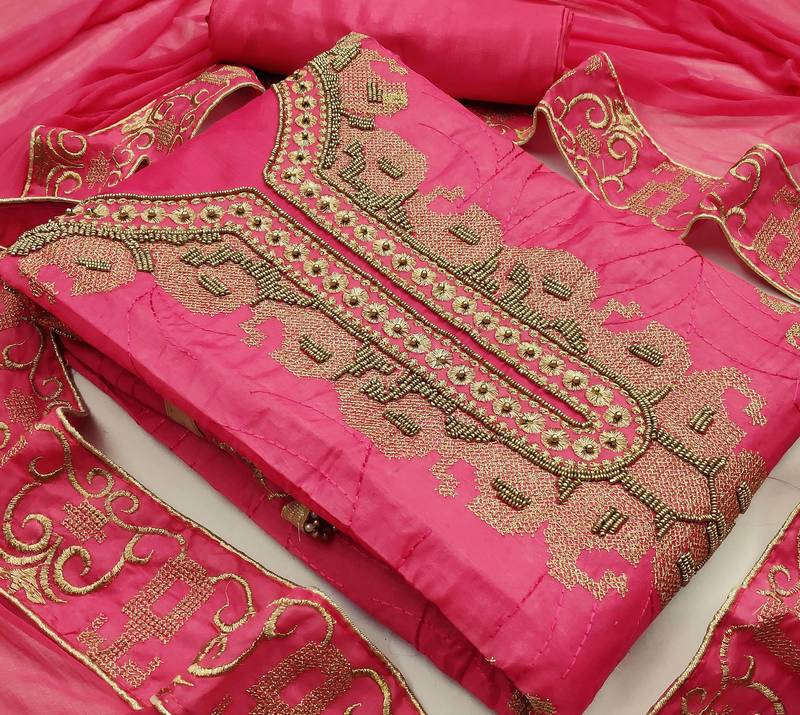 | Product Name | Pink Chanderi Hand Embroidery Dress Material | |