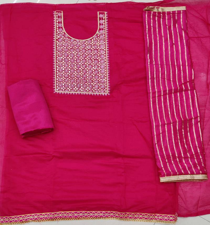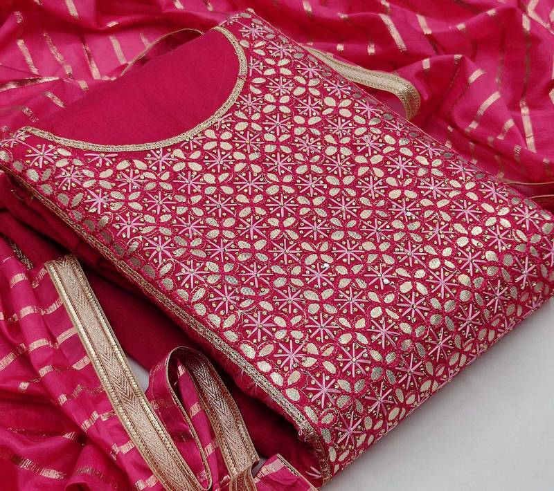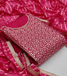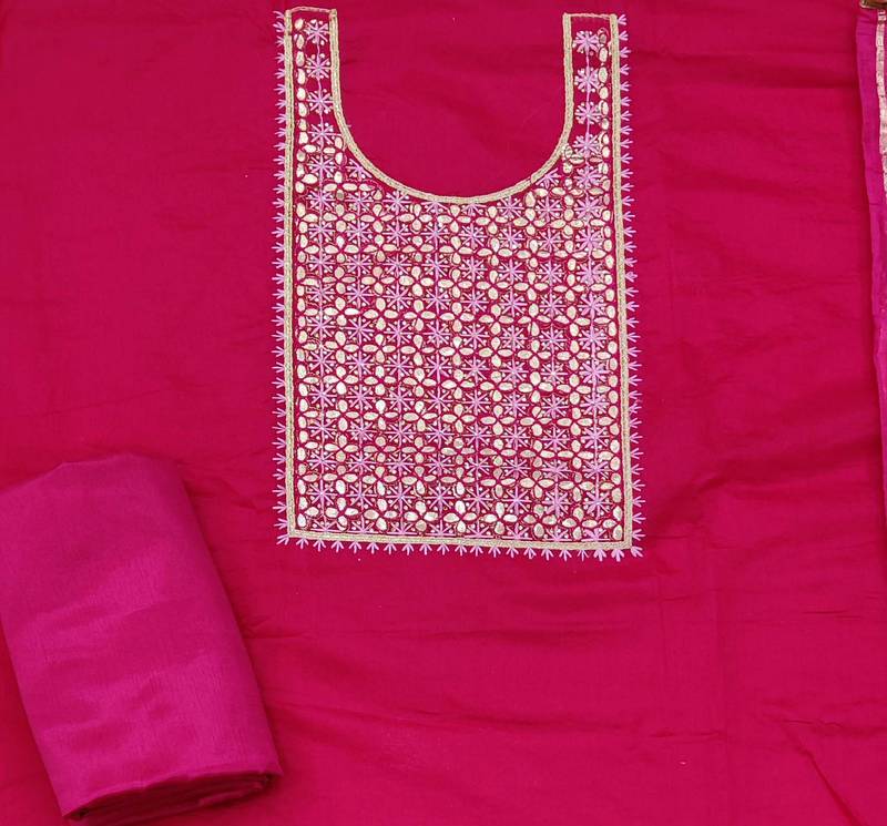 Pink chanderi hand embroidery dress material unstitched
