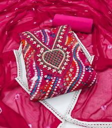 Pink cotton hand embroidery dress material unstitched