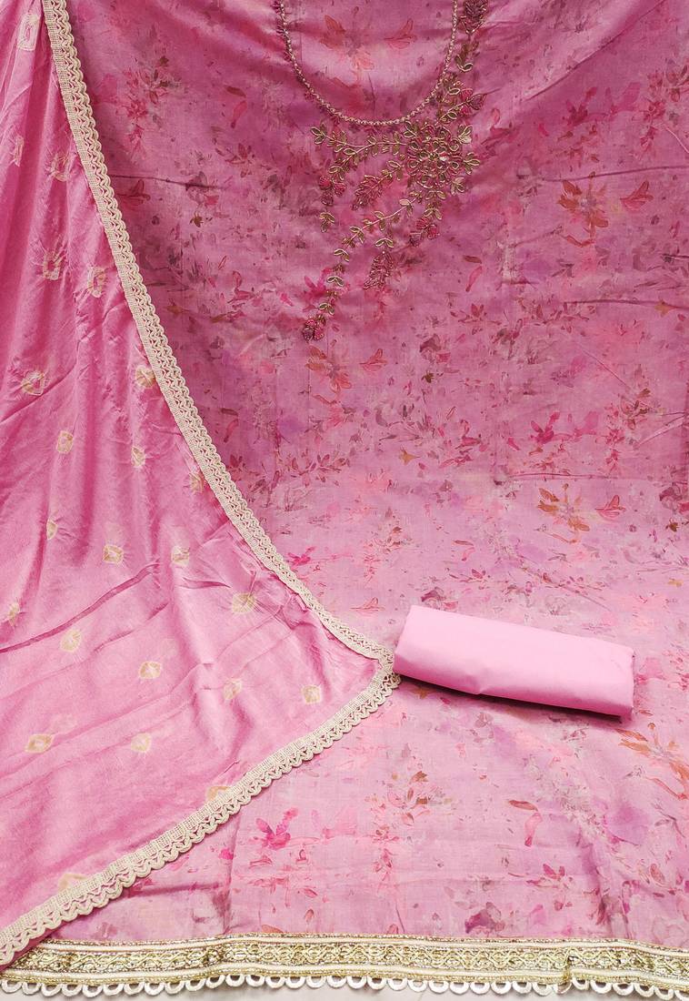 | Product Description | Fancy Print Handwork And Fancy Border With Bandhani Print Dupatta Straight Style 2.00 Mtr Unstitched Dress Material Top Of Pink Colour Cembric Cotton Fabric Also Including 2.40 Mtr Chudidar Style Bottom Piece Material Of Baby Pink Colour Pure Cotton Fabric With 2.05 Mtr Dupatta Of Baby Pink Colour Nazneen Fabric |