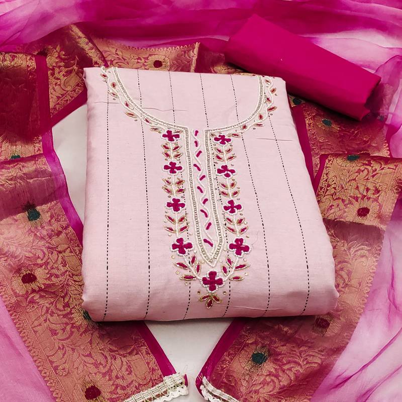 | Product Name | Pink Cotton Hand Embroidery Dress Material | |