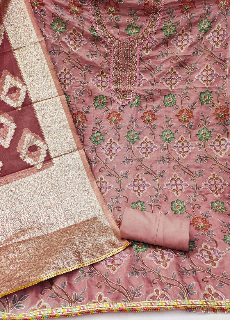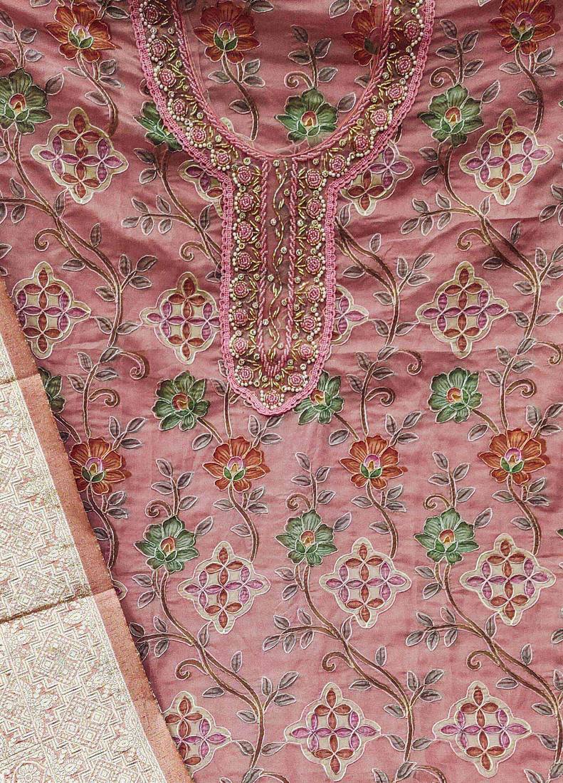 | Product Name | Pink Organza Hand Embroidery Dress Material | |