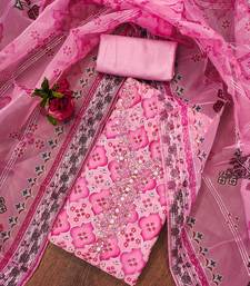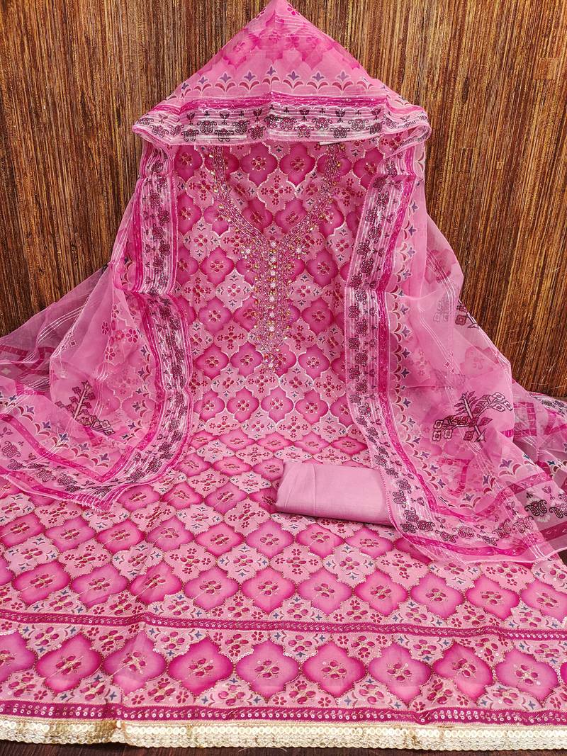 Pink organza sequins dress material unstitched