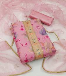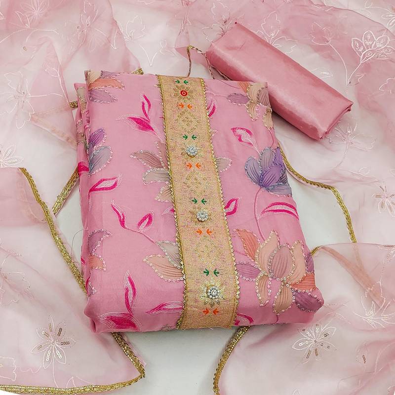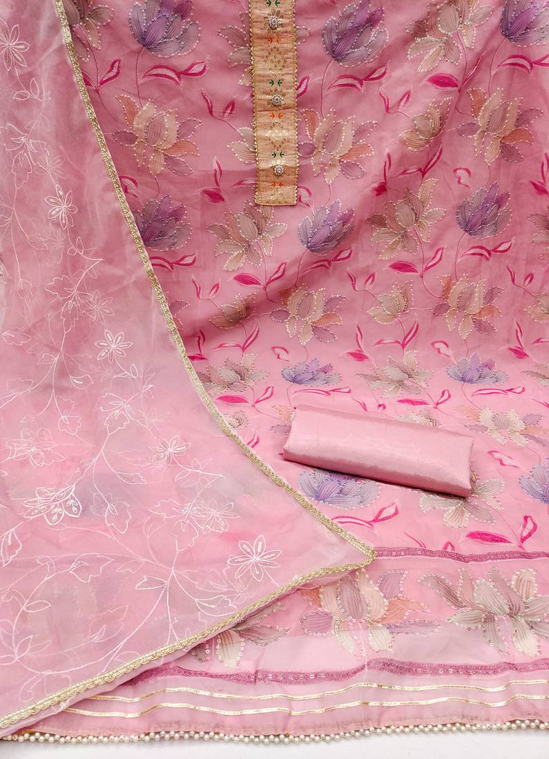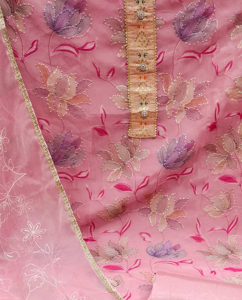 Pink organza sequins dress material unstitched