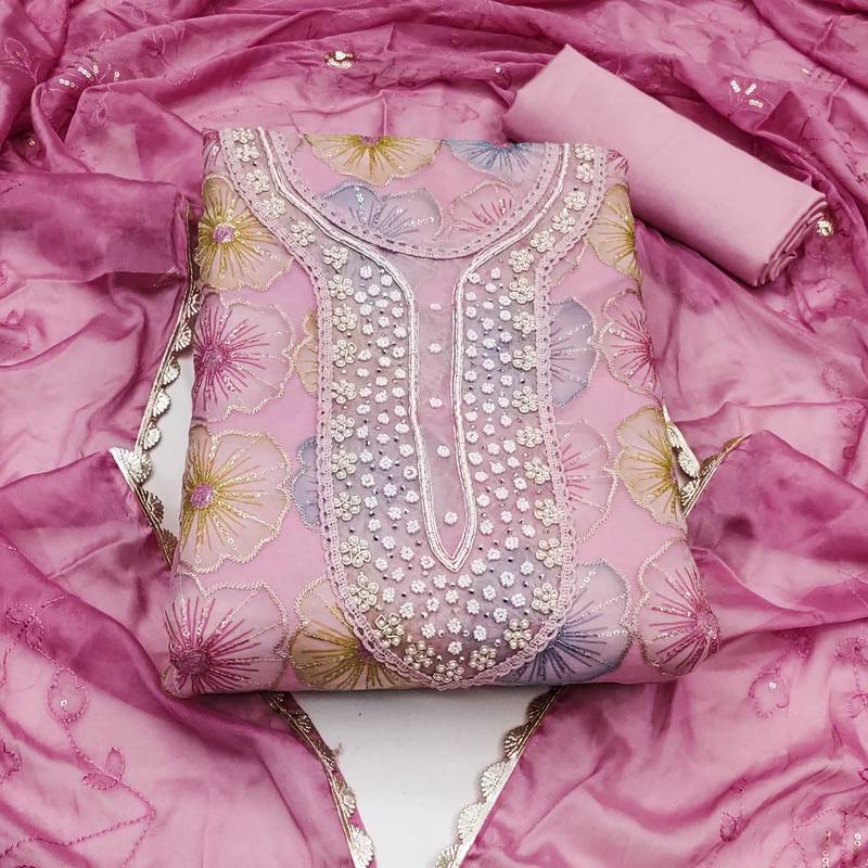 | Product Description | Sequin Work With Position Print And Hand Work With Heavy Embroidered Dupatta Work Straight Style 2.00 Mtr Unstitched Dress Material Top Of Pink Colour Oragnza Fabric With 2 Mtr Heavy Santoon As Lining Inner Fabric Also Including 3.80 Mtr Unstitched Bottom Material Of Pink Colour Heavy Santoon Fabric With 2.00 Mtr Dupatta Of Pink Colour Nazmin Fabric |