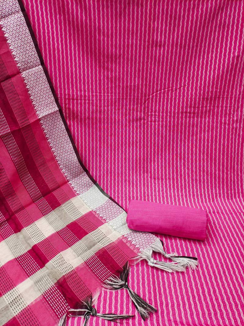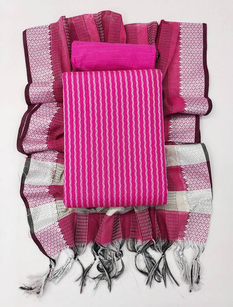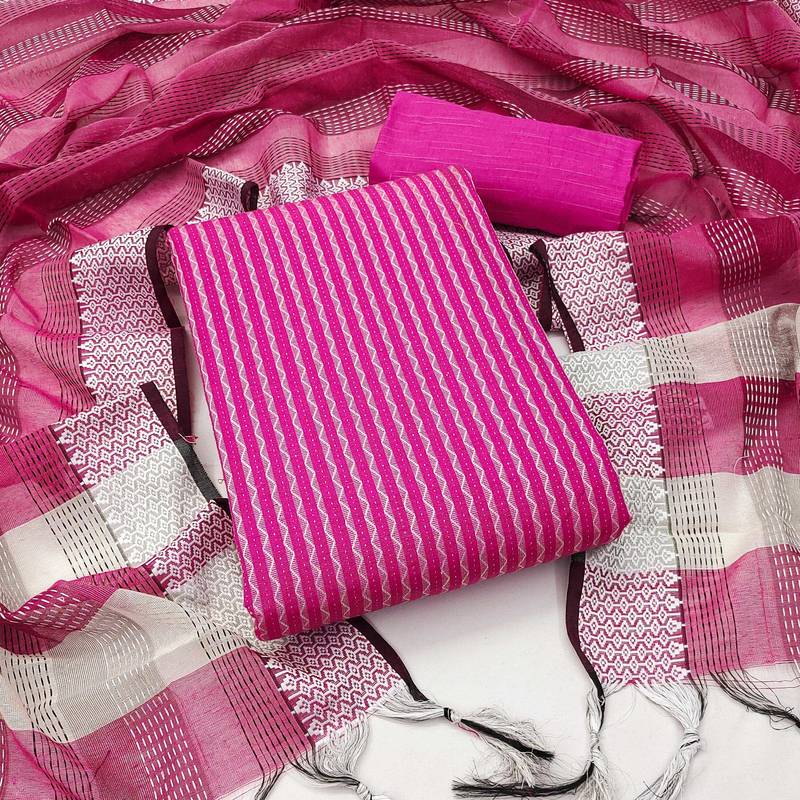 Fancy Weaving Straight Style 1.80 Mtr Unstitched Dress Material Top Of Pink Colour Cotton Jacquard Fabric Also Including 2.00 Mtr Chudidar Style Bottom Piece Material Of Pink Colour Cotton Jacquard Fabric With 2.00 Mtr Dupatta Of Pink Colour Cotton Fabric