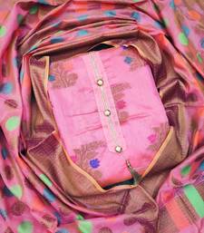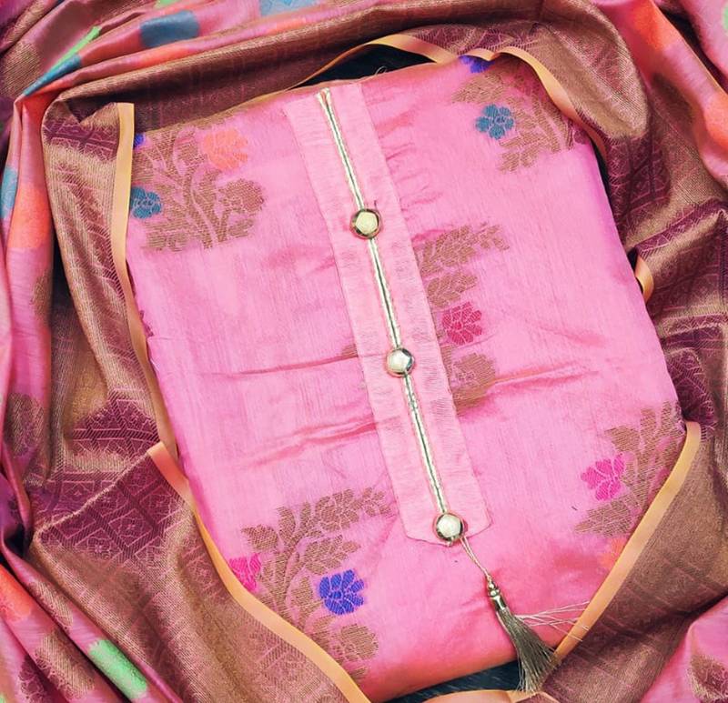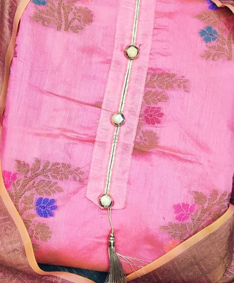 Pink jacquard woven dress material unstitched