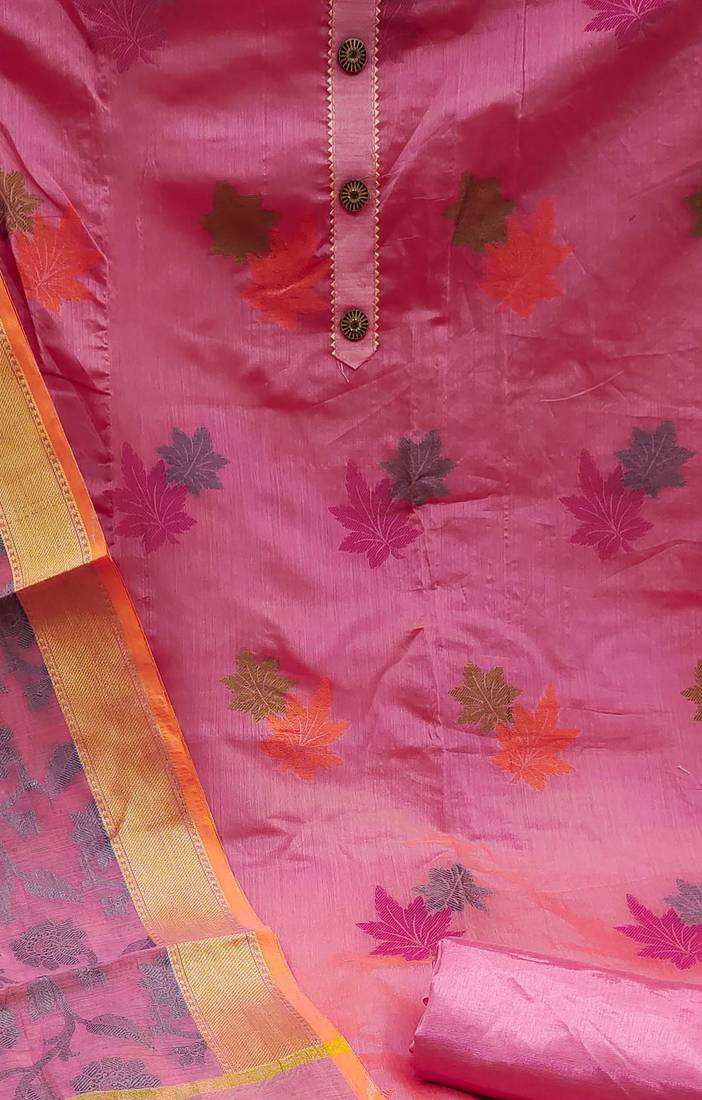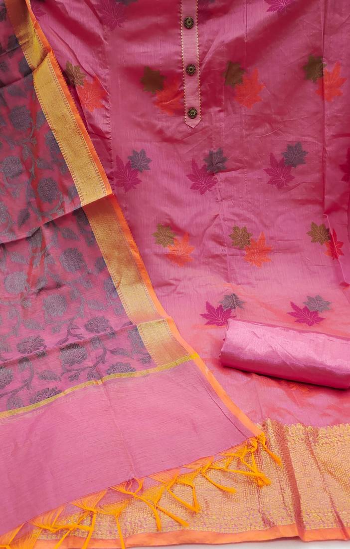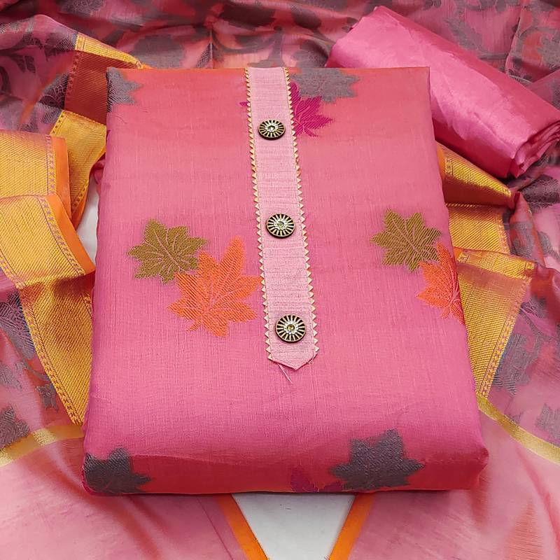 Pink jacquard woven dress material unstitched