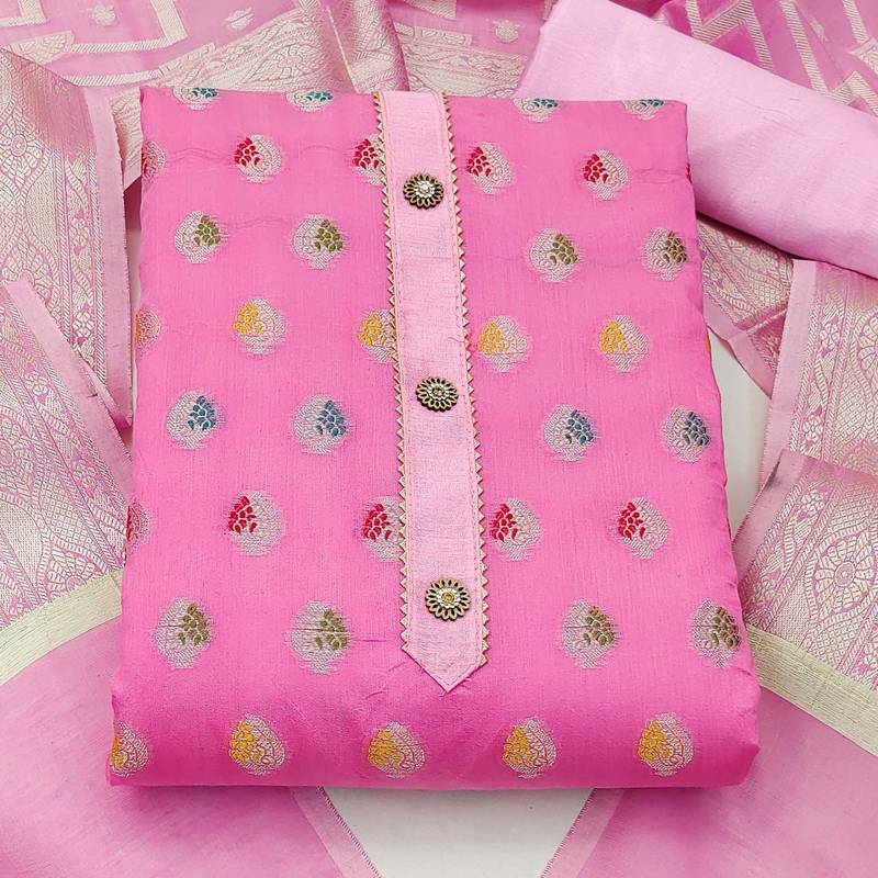 | Product Description | Dashing Weaving Straight Style 1.80 Mtr Unstitched Dress Material Top Of Pink Colour Banarasi Jacquard Fabric With Inner Lining Fabric Of Santoon Also Including 2.00 Mtr Chudidar Style Bottom Piece Material Of Pink Colour Santoon Fabric With 2.00 Mtr Dupatta Of Pink Colour Banarasi Jacquard Fabric |