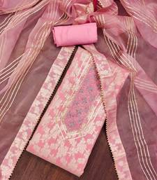 Pink silk blend woven dress material unstitched