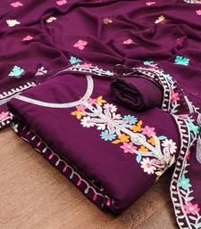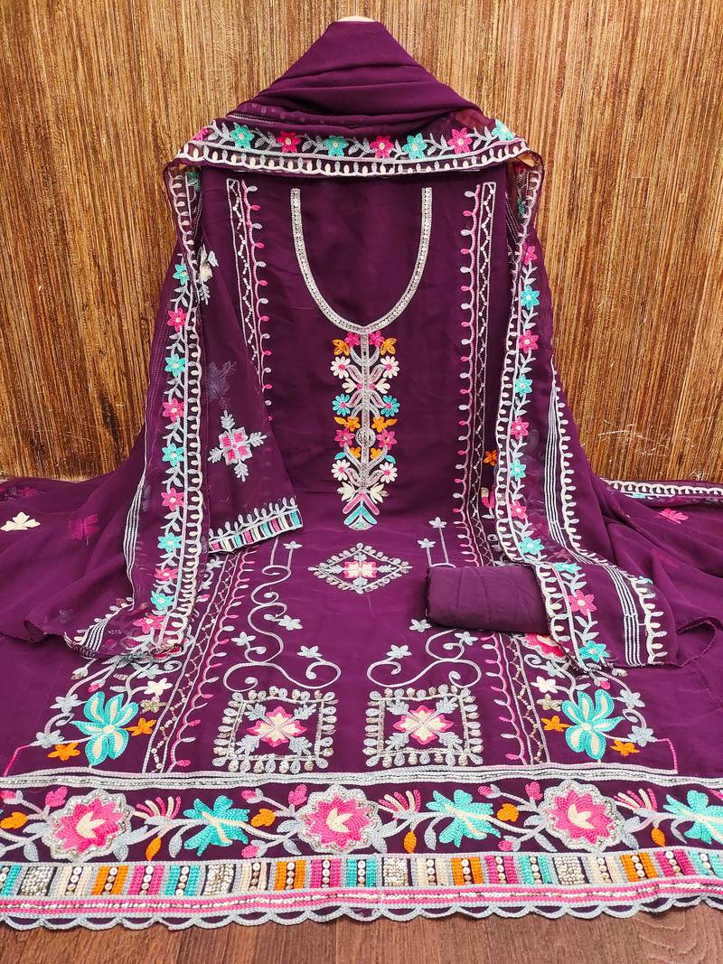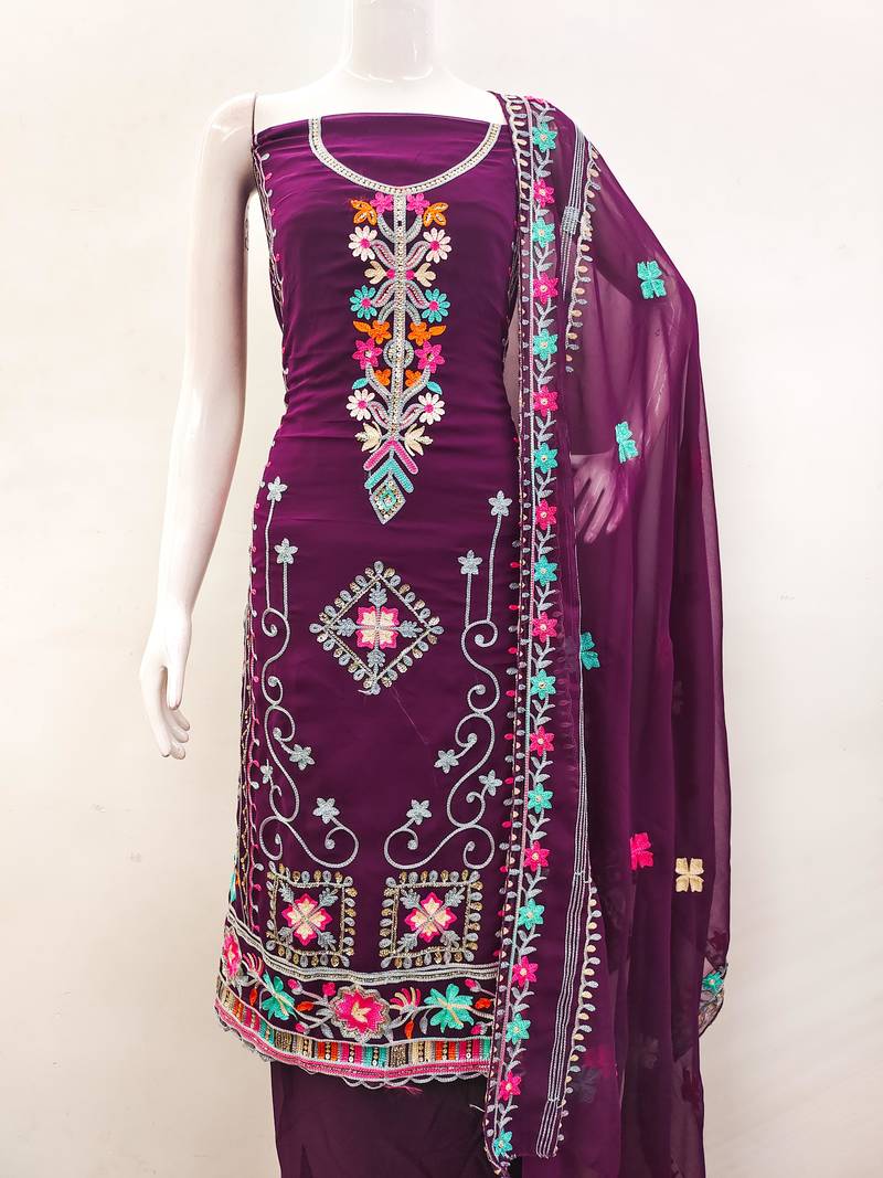 Purple georgette embroidered dress material unstitched