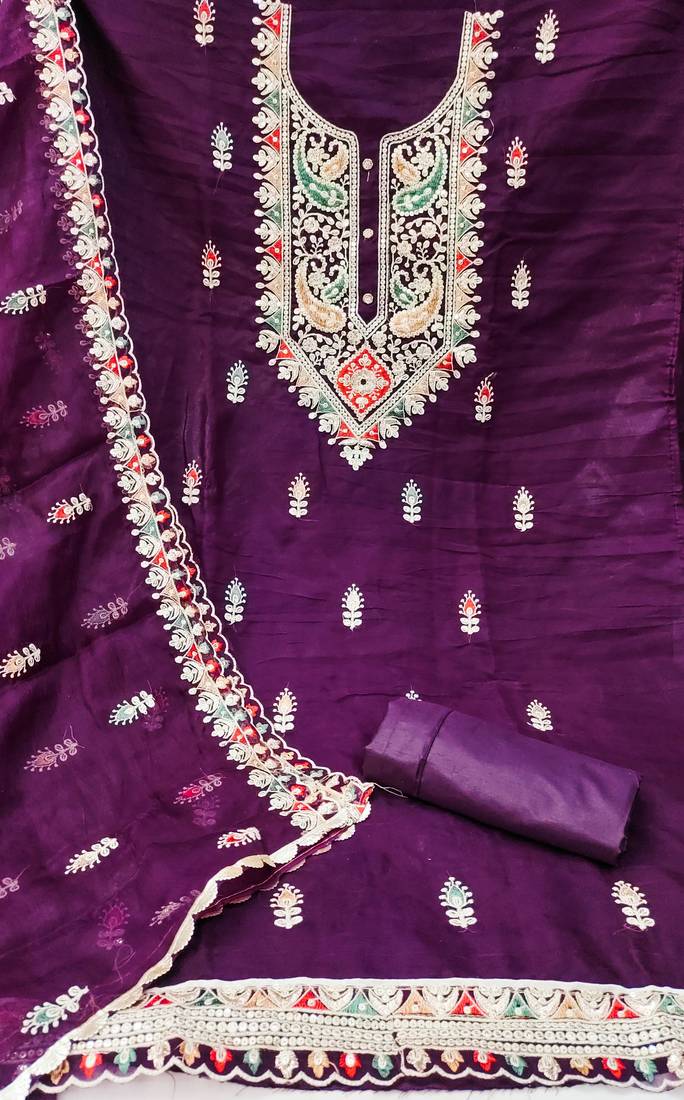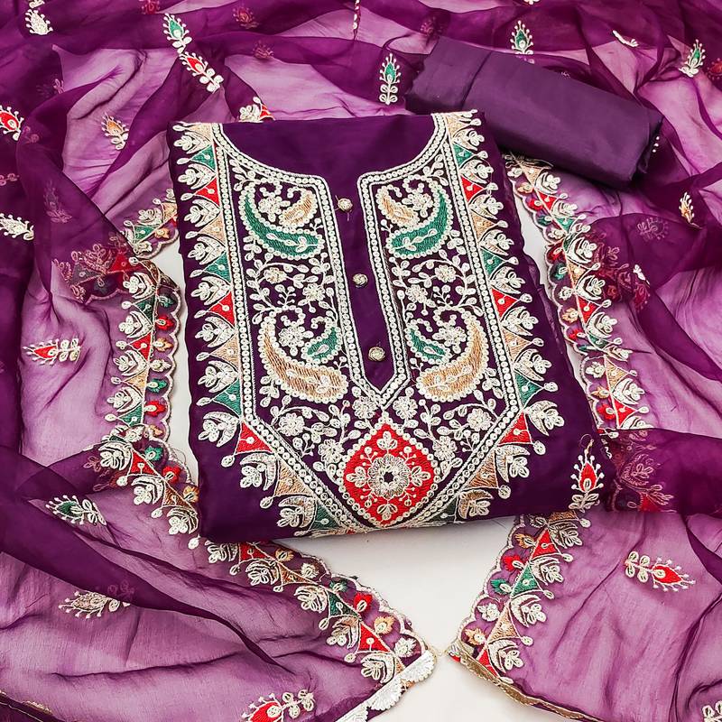 | Product Name | Purple Organza Embroidered Dress Material | |