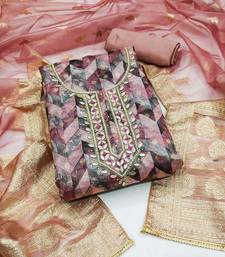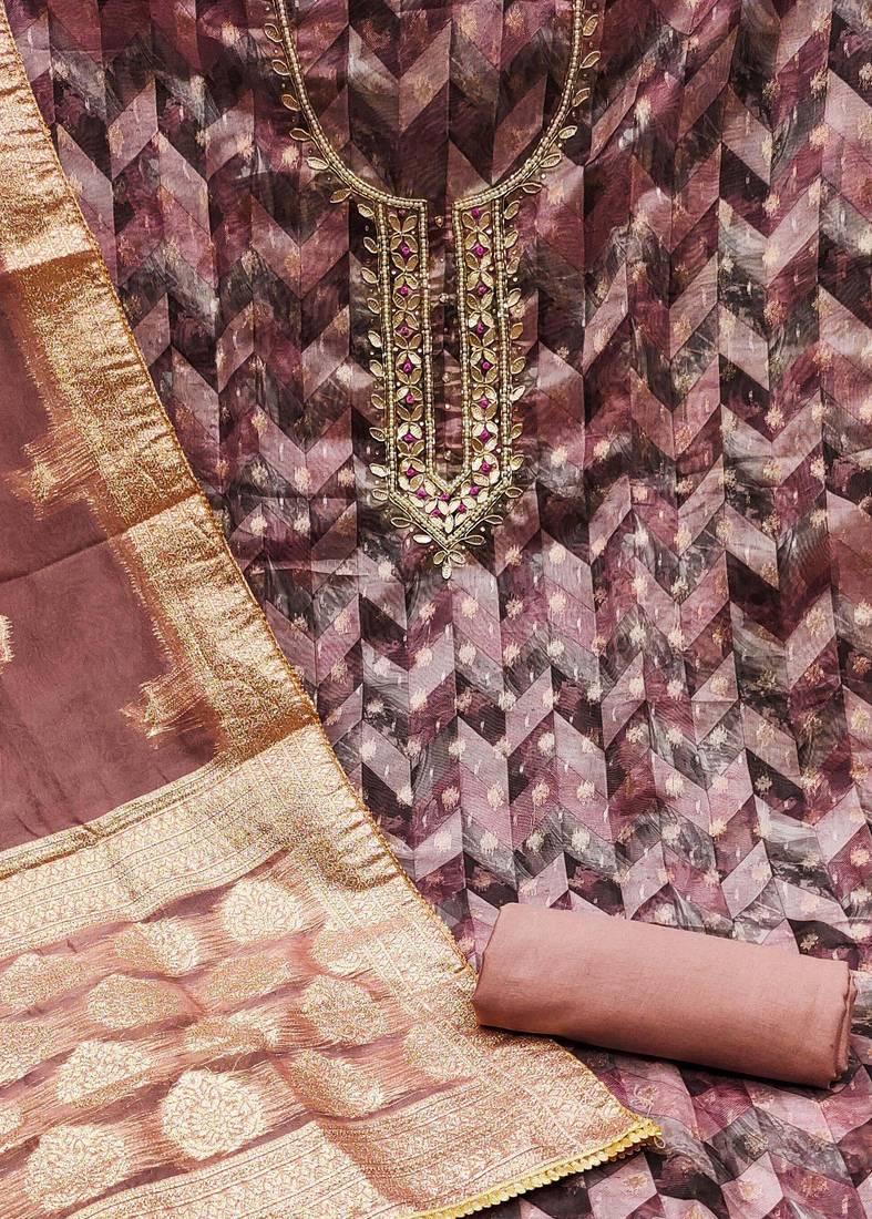 Purple organza woven dress material unstitched