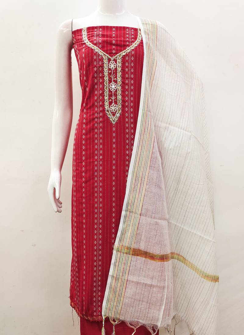 | Product Name | Red Cotton Hand Embroidery Dress Material | |