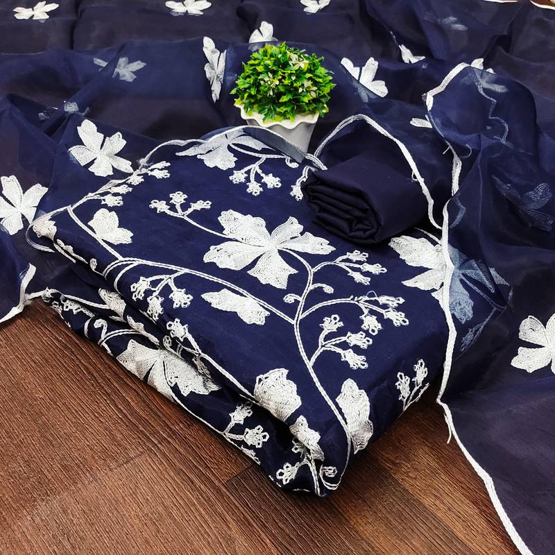| Product Name | Royal Blue Organza Embroidered Dress Material | |