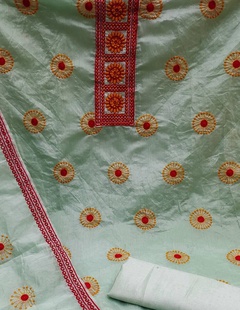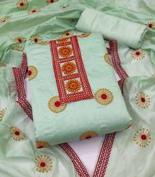 Sea green cotton embroidered dress material unstitched