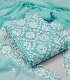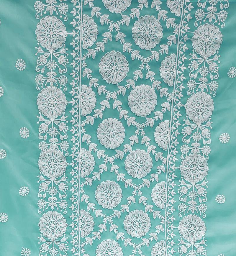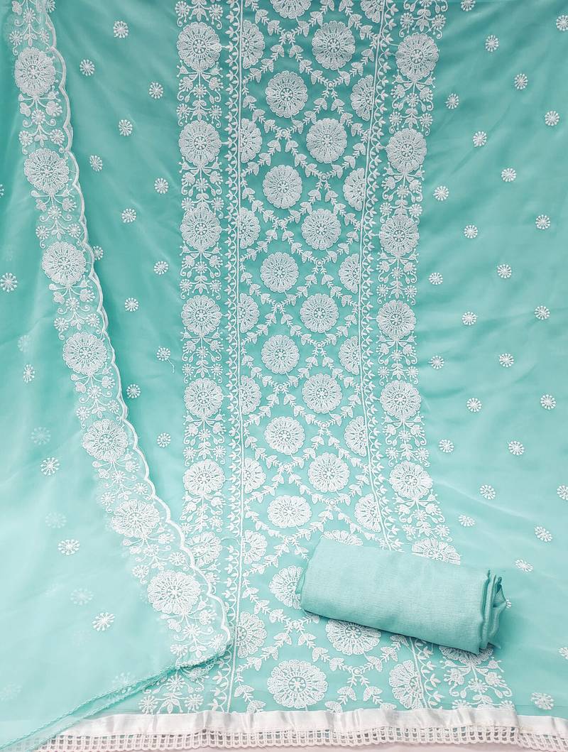 Sea green georgette embroidered dress material unstitched