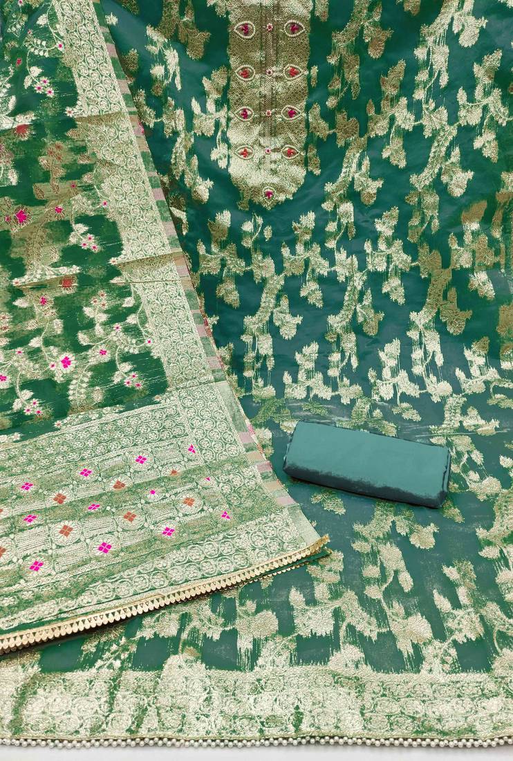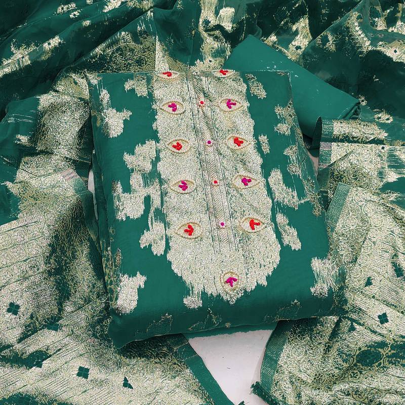 | Product Description | Fancy Handwork And Border With Weaving Dupatta Straight Style 2.25 Mtr Unstitched Dress Material Top Of Sea Green Colour Organza Banarasi Fabric With 2 Mtr Santoon As Lining Inner Fabric Also Including 3.80 Mtr Unstitched Bottom Material Of Sea Green Colour Santoon Fabric With 2.00 Mtr Dupatta Of Sea Green Colour Banarasi Fabric |