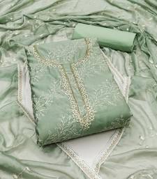 Sea green cotton sequins dress material unstitched