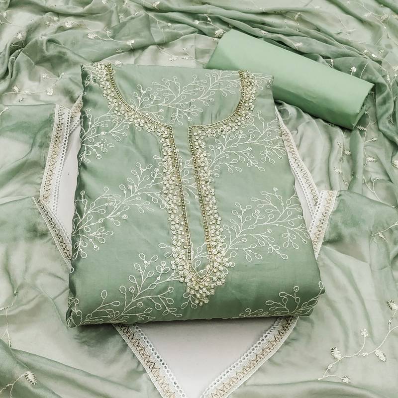 | Product Description | Heavy Thread Sequin Work Hand Work And Fancy Border With Embroidered Dupatta Straight Style 2.00 Mtr Unstitched Dress Material Top Of Sea Green Colour P V Cotton Fabric Also Including 2.40 Mtr Chudidar Style Bottom Piece Material Of Sea Green Colour Cotton Fabric With 2.00 Mtr Dupatta Of Sea Green Colour Nazneen Fabric |