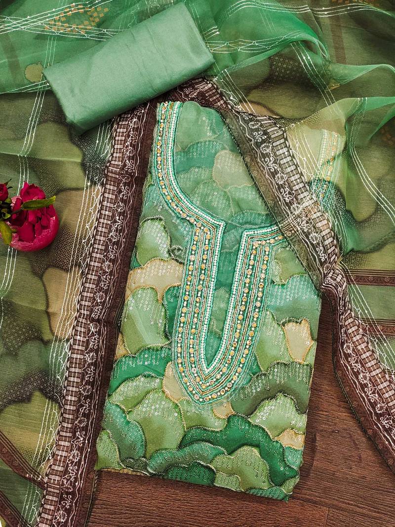 | Product Name | Sea Green Organza Sequins Dress Material | |