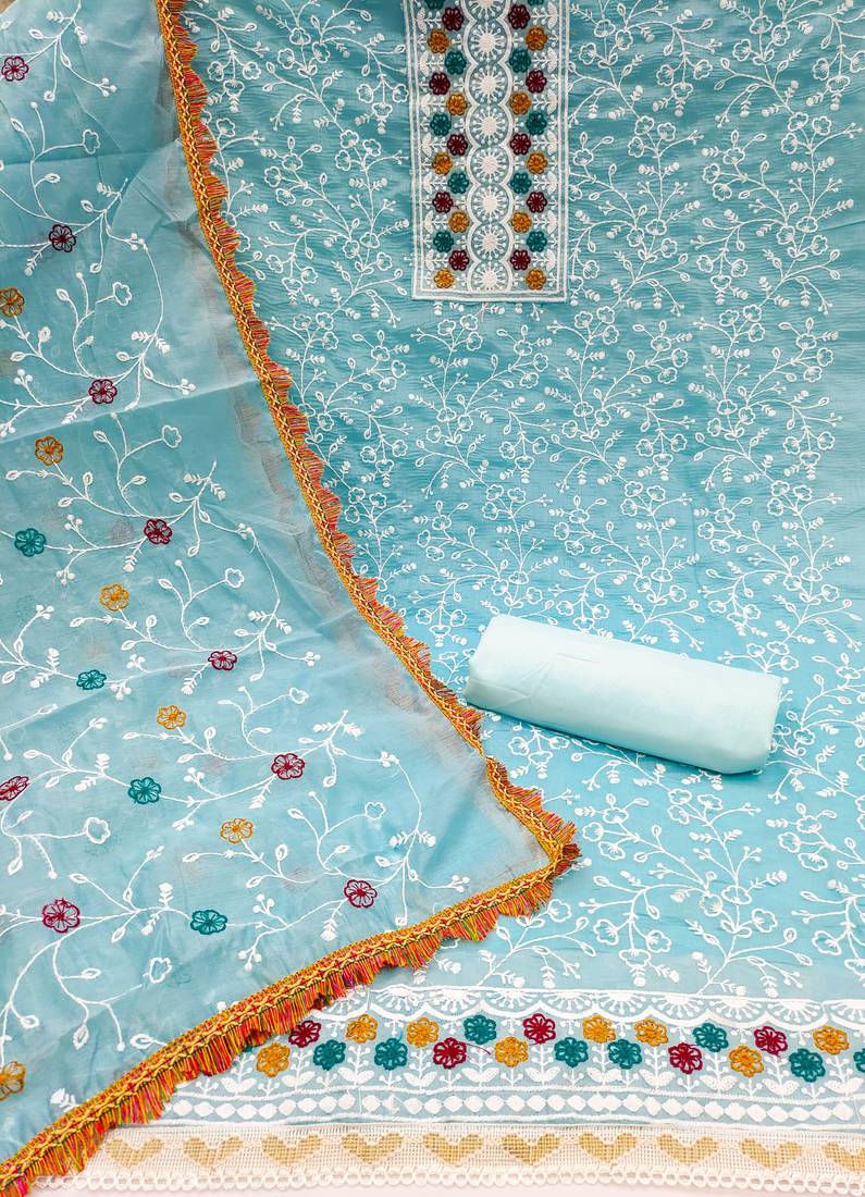 | Product Description | Fancy Heavy Multi Thread Embroidery And Fancy Border With Embroidered Dupatta Straight Style 1.80 Mtr Unstitched Dress Material Top Of Sky Blue Colour Chanderi Cotton Fabric With 2 Mtr American Crape As Lining Inner Fabric Also Including 2.00 Mtr Unstitched Bottom Material Of Sky Blue Colour American Crape Fabric With 2.00 Mtr Dupatta Of Sky Blue Colour Chanderi Cotton Fabric |