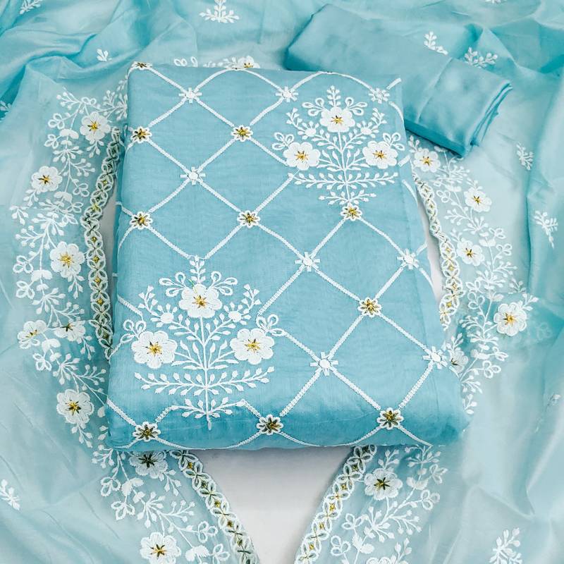 | Product Name | Sky Blue Cotton Embroidered Dress Material | |
