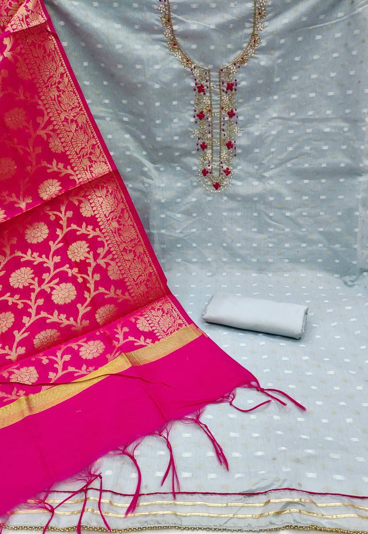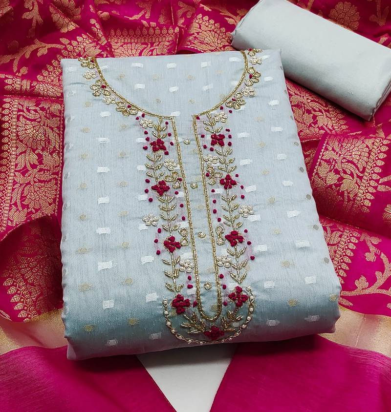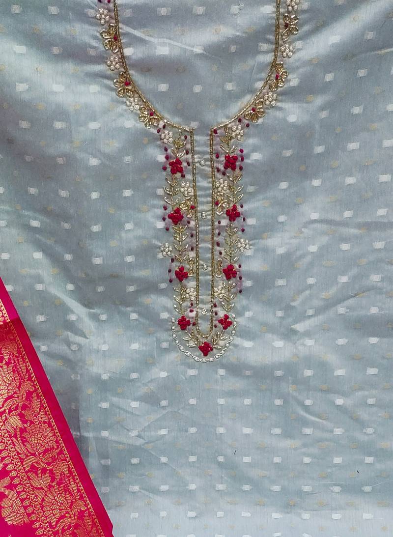 | Product Name | Teal Blue Jacquard Hand Embroidery Dress Material | |