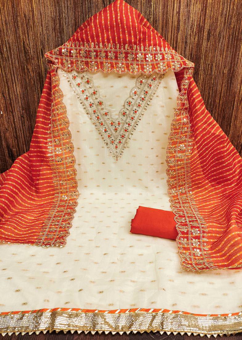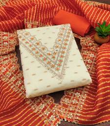 White chanderi silk embroidered dress material unstitched
