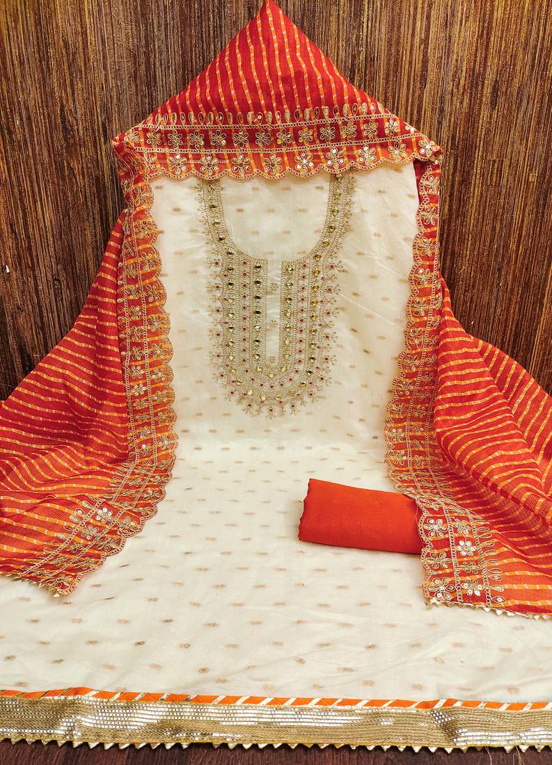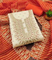 White chanderi silk embroidered dress material unstitched