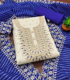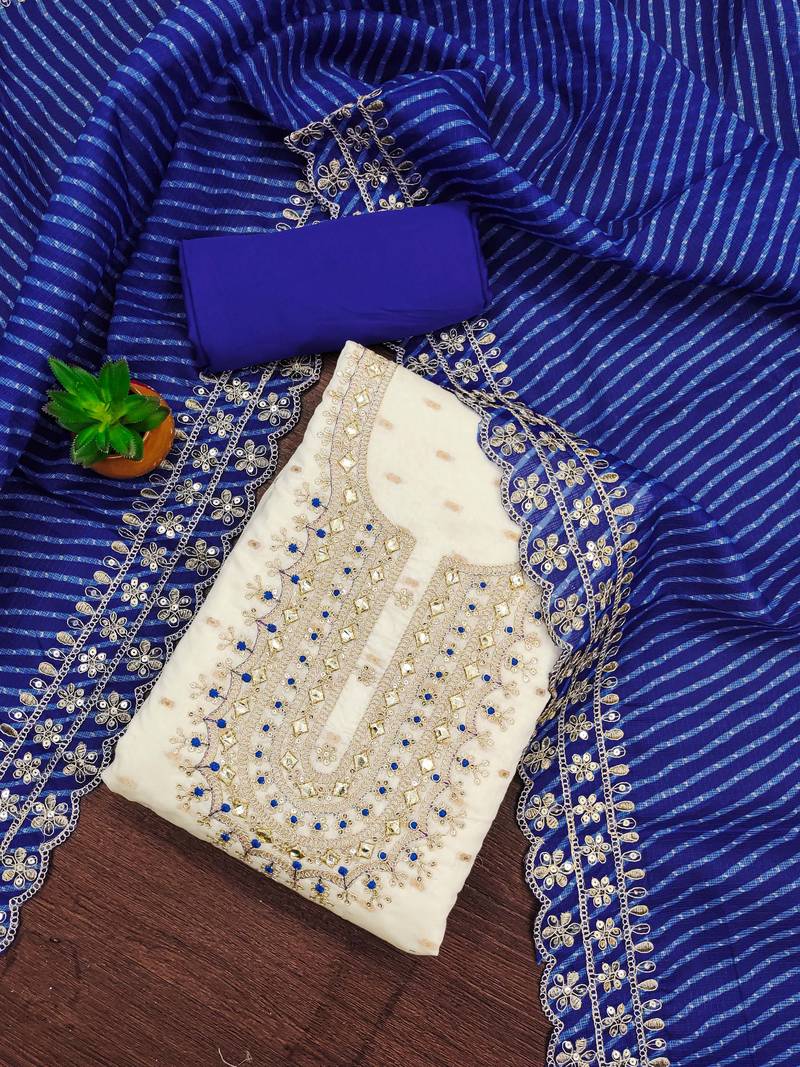 White chanderi silk embroidered dress material unstitched