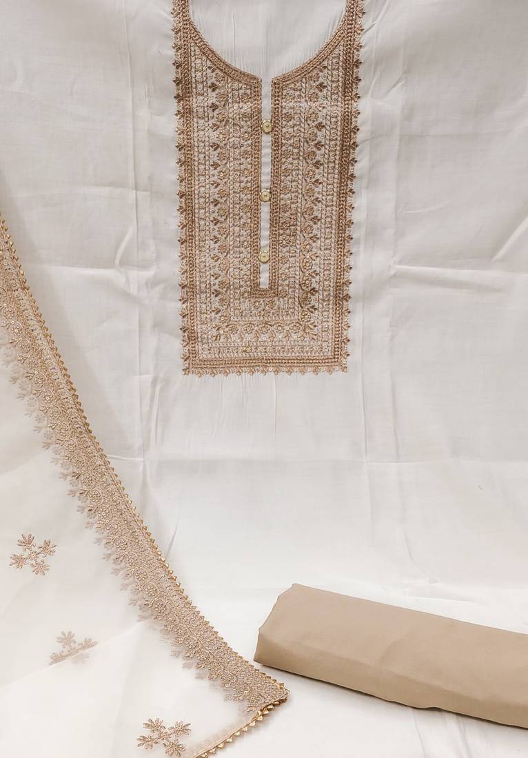 | Product Name | White Silk Blend Embroidered Dress Material | |