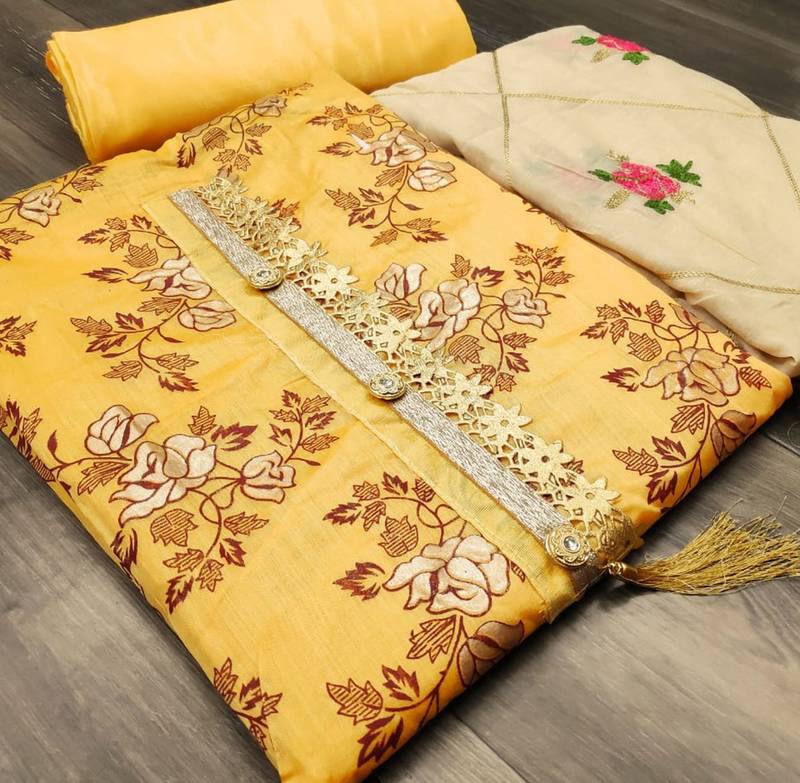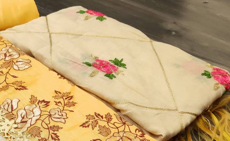 | Product Name | Yellow Chanderi Embroidered Dress Material | |