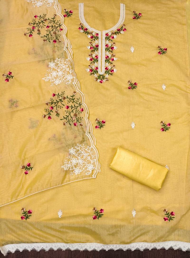 | Product Name | Yellow Cotton Embroidered Dress Material | |