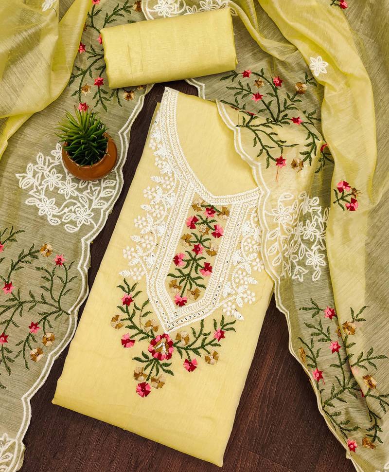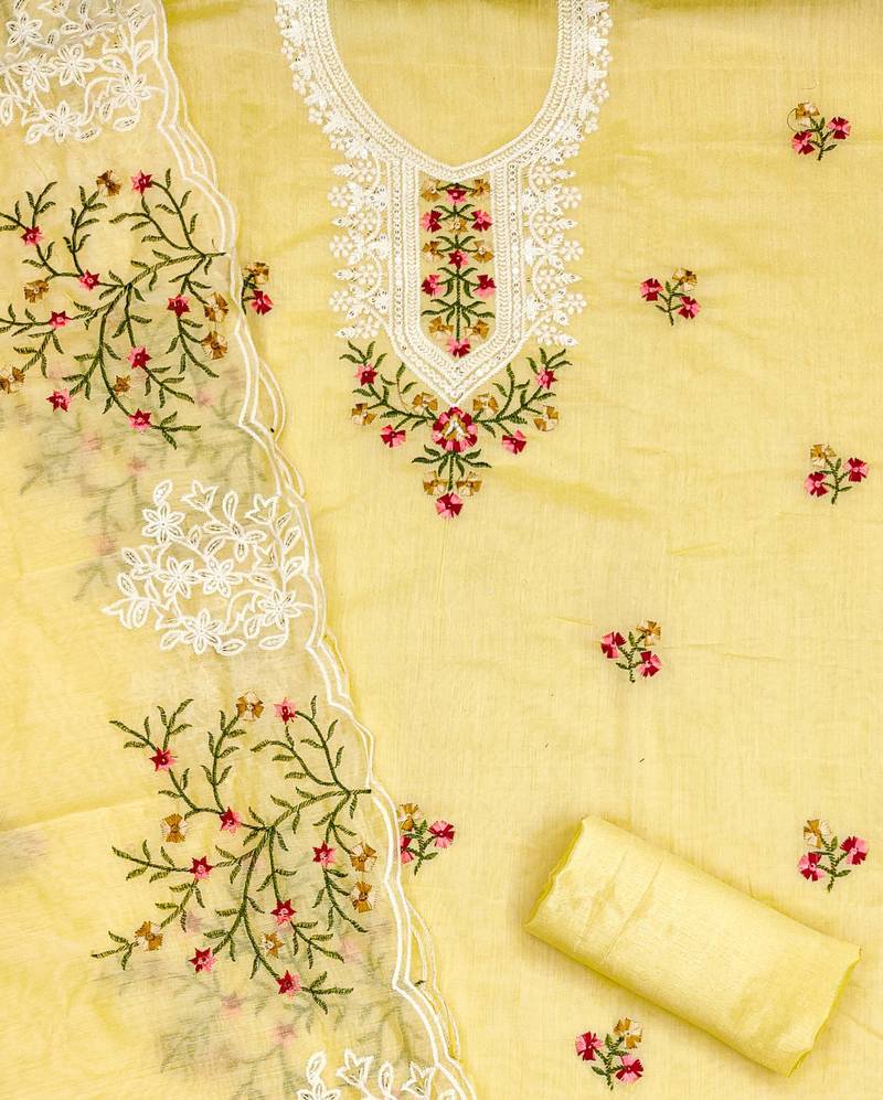| Product Name | Yellow Cotton Embroidered Dress Material | |