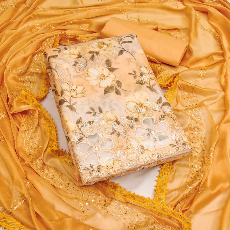 | Product Name | Yellow Cotton Embroidered Dress Material | |