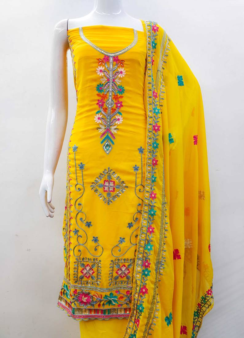 | Product Name | Yellow Georgette Embroidered Dress Material | |