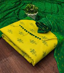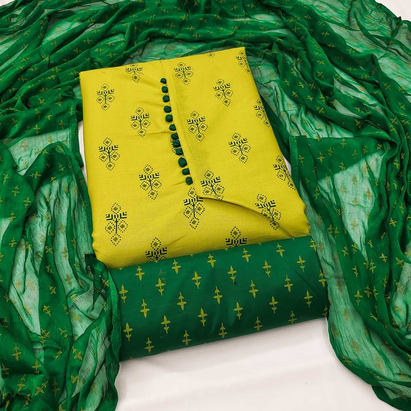 Yellow cotton printed dress material unstitched