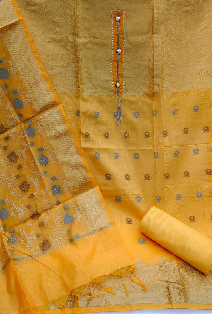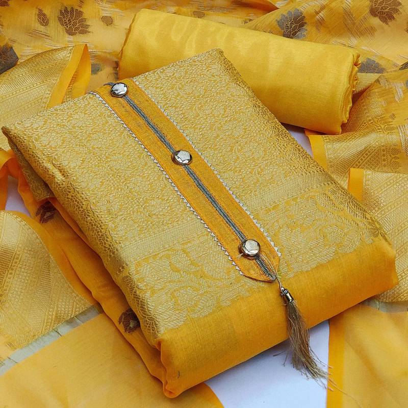 Yellow jacquard woven dress material unstitched