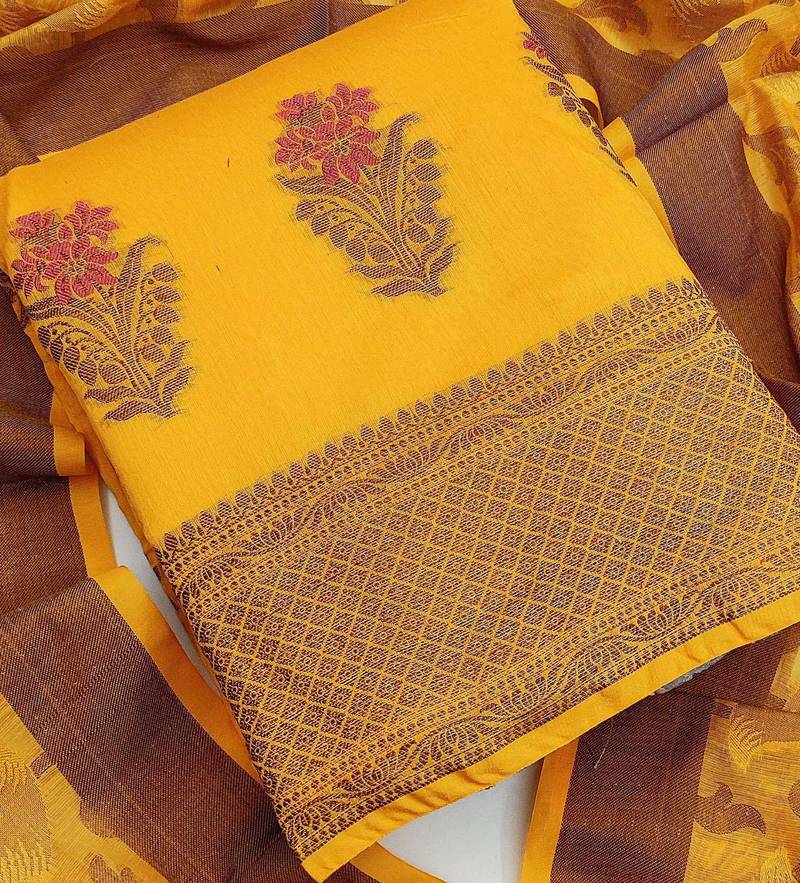 Yellow jacquard woven dress material unstitched