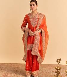 Orange embroidered silk kurta set with dupatta