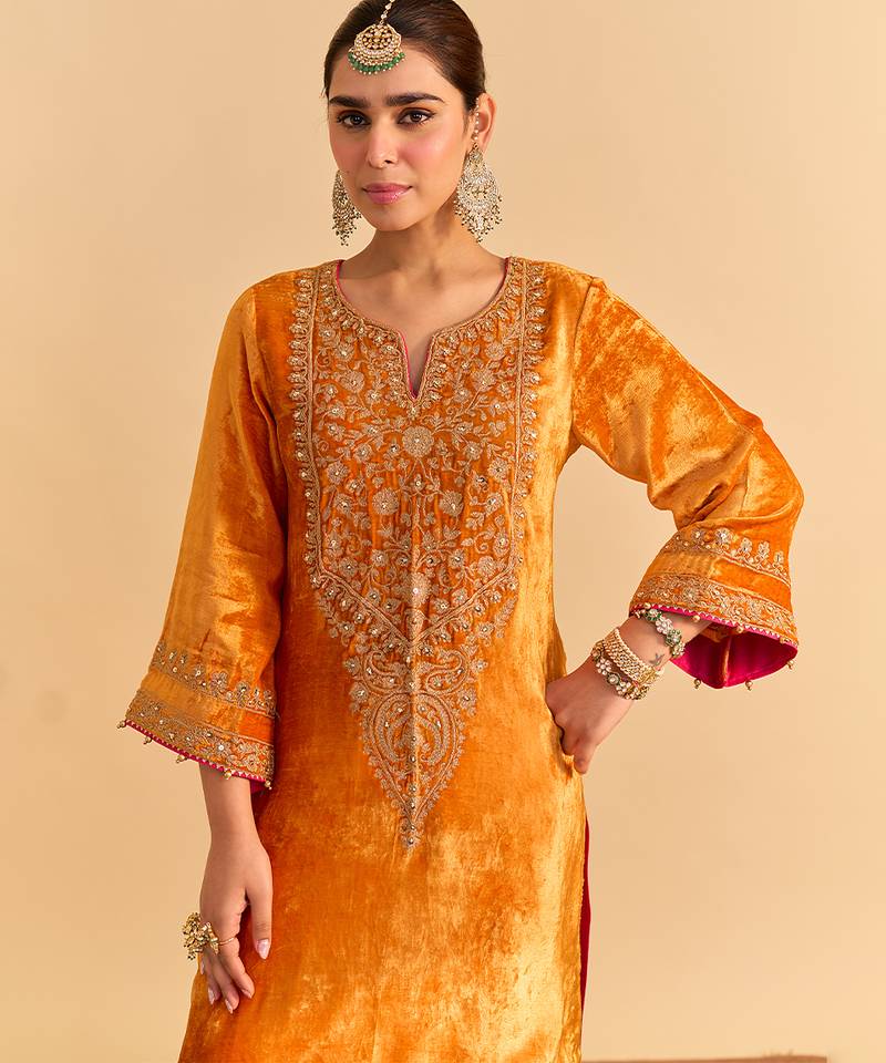 | Product Name | Orange Embroidered Velvet Kurta Set | |