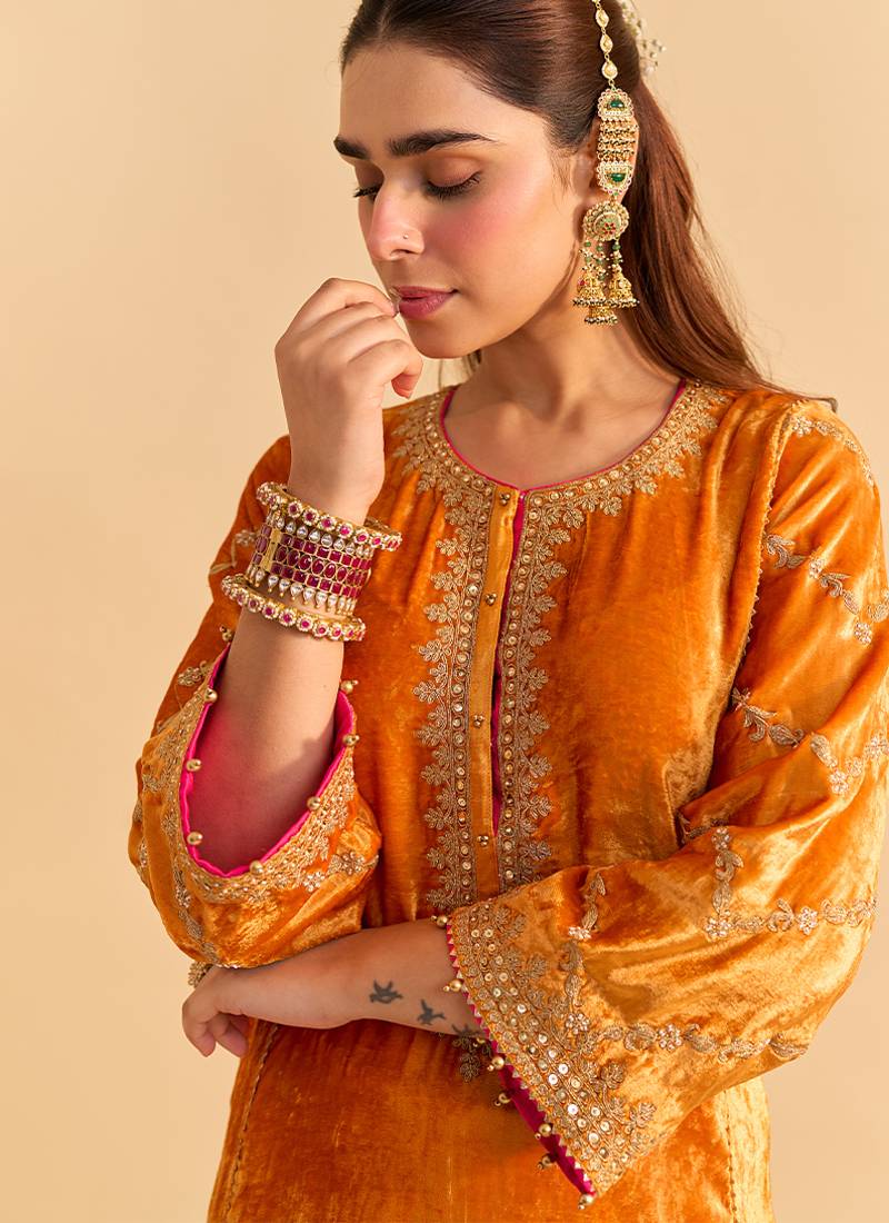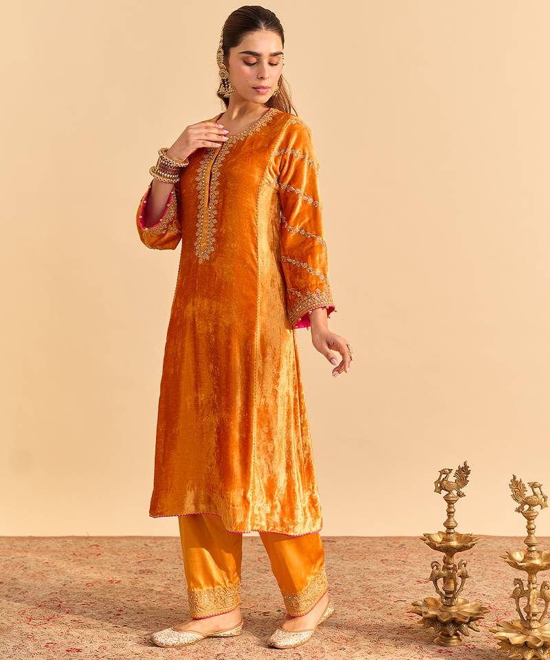 | Product Name | Orange Embroidered Velvet Kurta Set With Dupatta | |