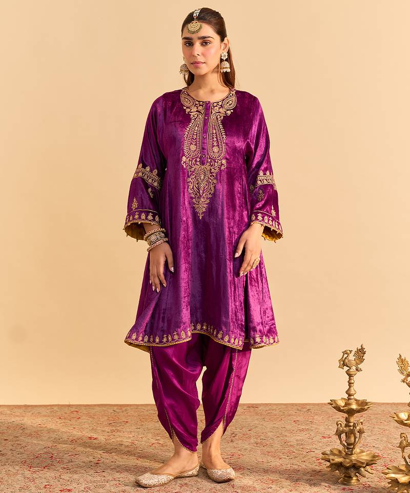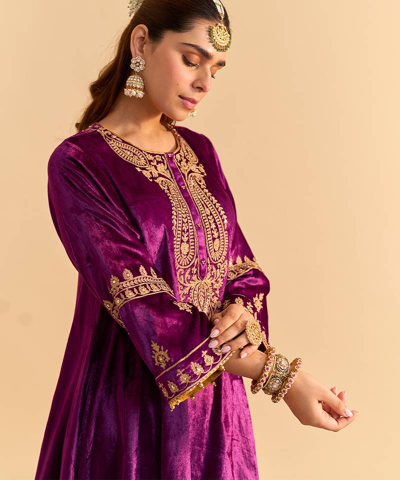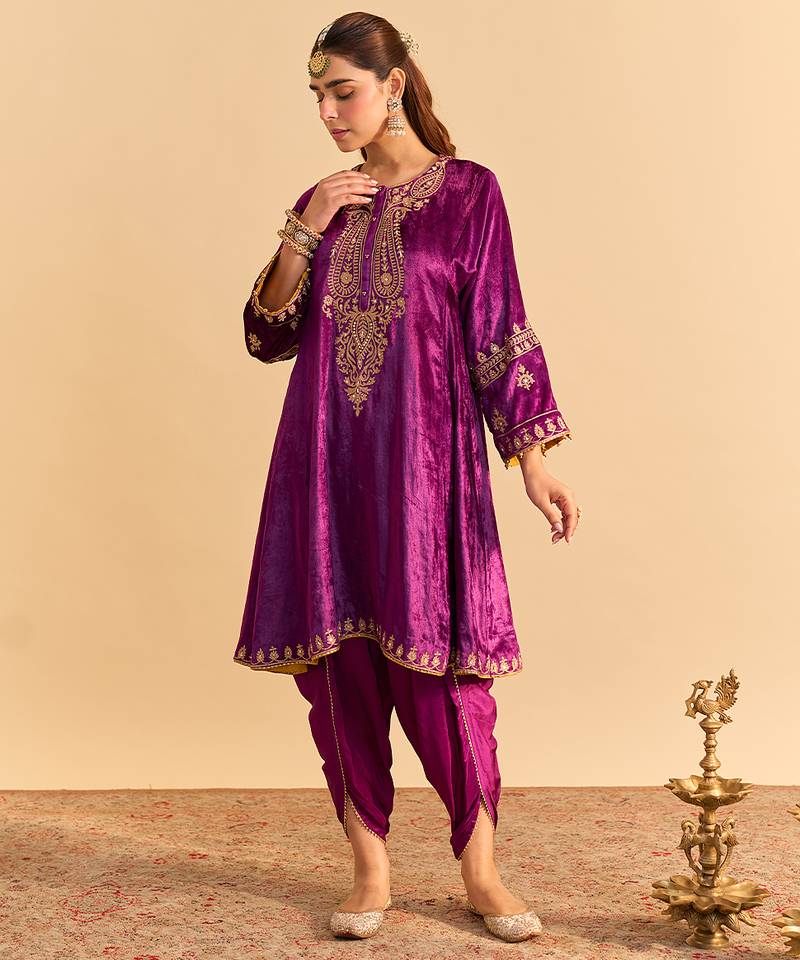 | Product Name | Purple Embroidered Velvet Kurta Set With Dupatta | |