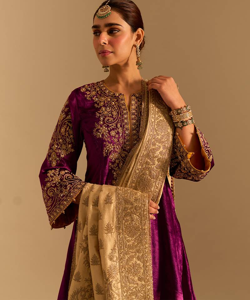 | Product Name | Purple Embroidered Velvet Kurta Set With Dupatta | |