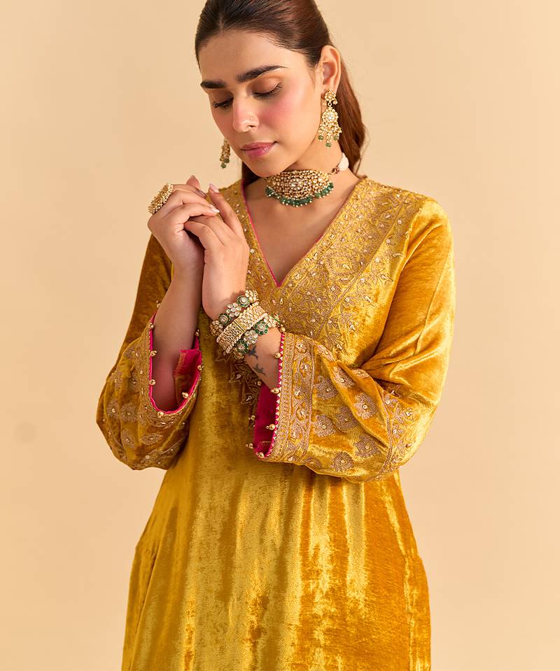 | Product Name | Yellow Embroidered Velvet Kurta Set With Dupatta | |