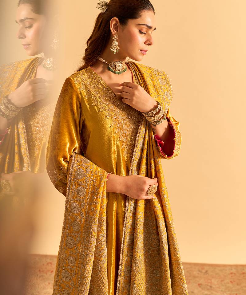 | Product Description | This Yellow Embroidered Velvet Kurta Set With Dupatta Exudes Regal Elegance And Festive Charm. Crafted From Rich Velvet Fabric, It Features Intricate Embroidery That Adds A Luxurious, Refined Touch. Paired With A Matching Dupatta, It Offers A Graceful Silhouette, Premium Comfort, And Timeless Ethnic Appeal For Special Occasions.