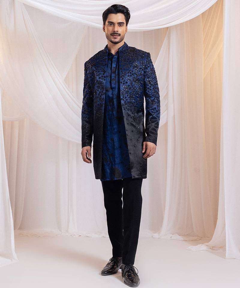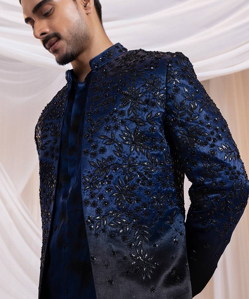 | Product Name | Blue Embroidered Satin Bandhgala | |