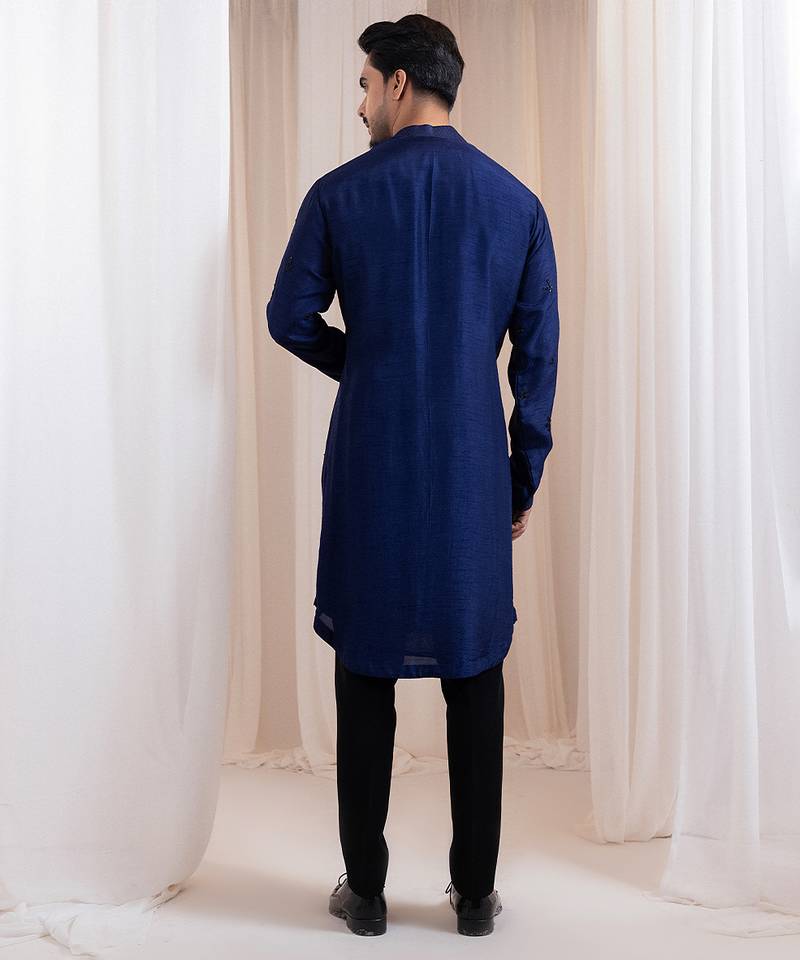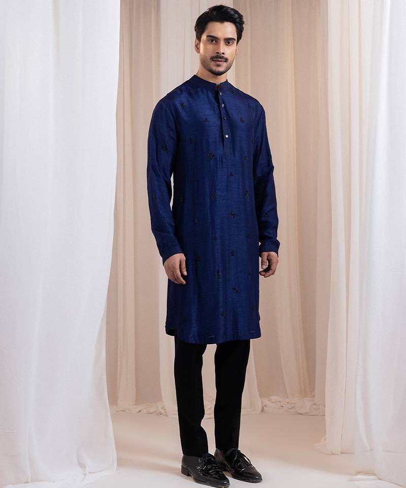 Blue embroidered silk kurta pajama