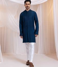 Blue embroidered silk kurta pajama